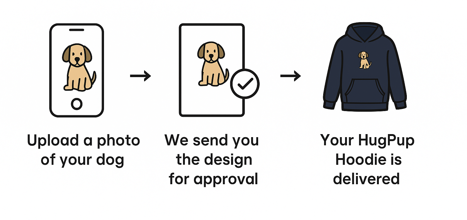 Step 3: Once you approve the design we ship the hoodie to you and within 2-3 weeks you receive your new HugPup Hoodie!