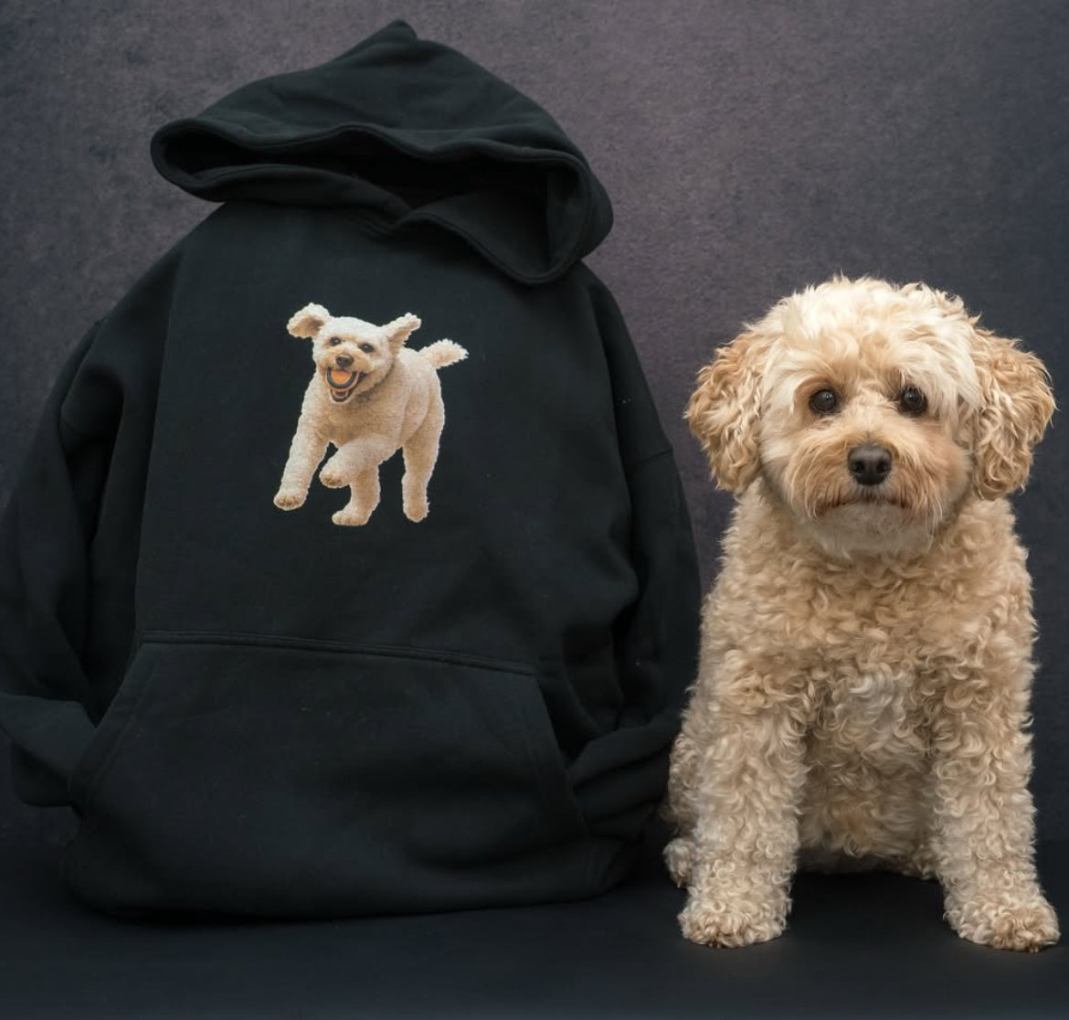 Every hoodie features a hyper-realistic portrait of your dog, printed on ultra-soft, heavyweight fabric that feels like a warm hug from day one.