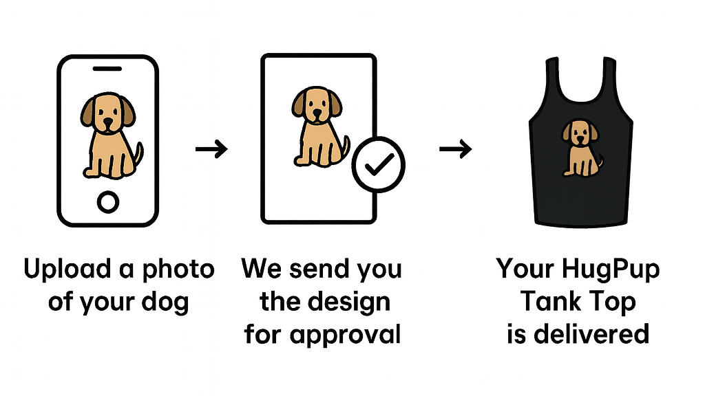 Step 3: Once you approve the design we ship the tank top to you and within 2-3 weeks you receive your new HugPup tank top!